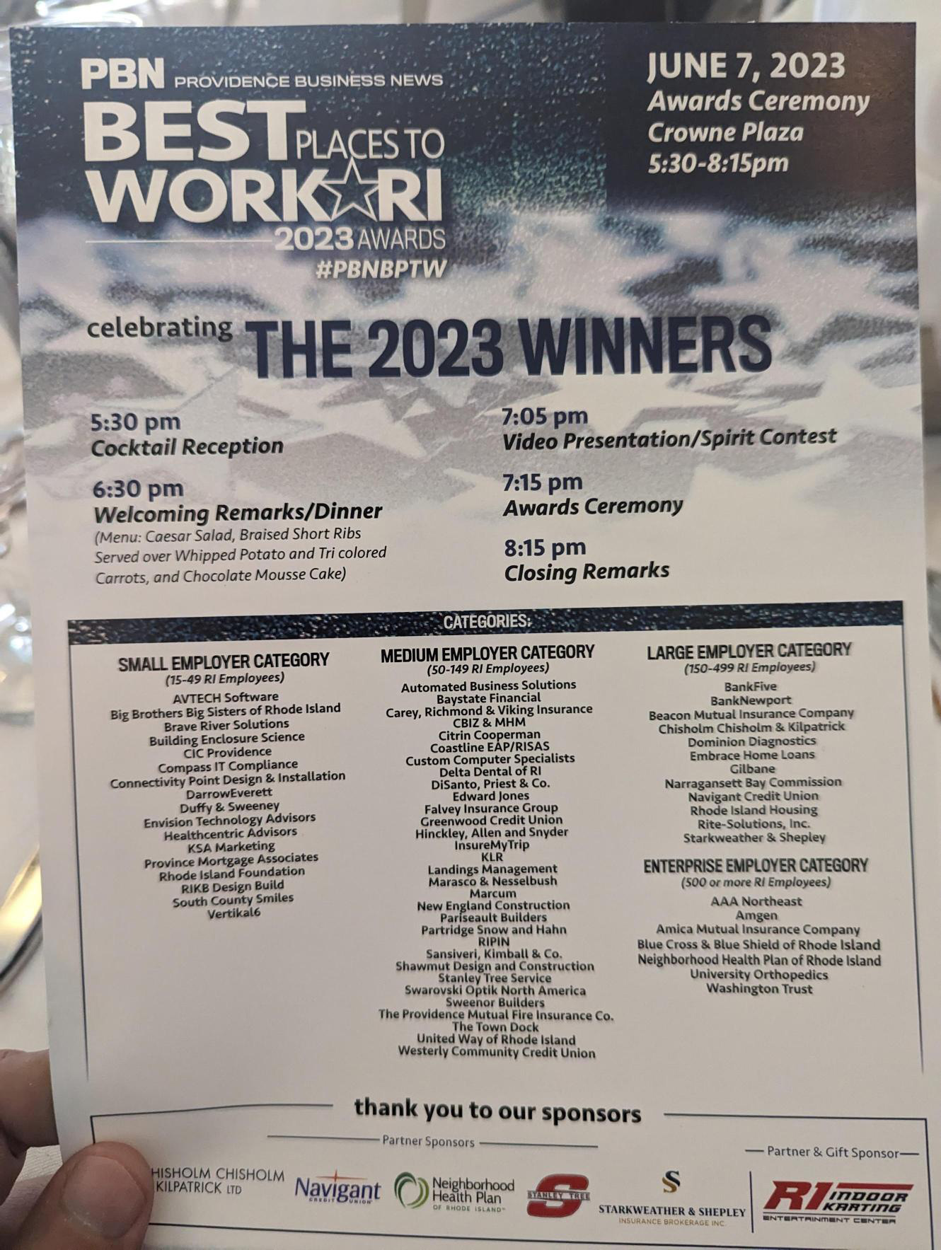 Envision's team was invited to the ceremony after learning of the win back in May. We were 10 of the 650 people that attended the sold-out event. According to PBN, honorees were carefully considered based on HR policy and employee satisfaction surveys.