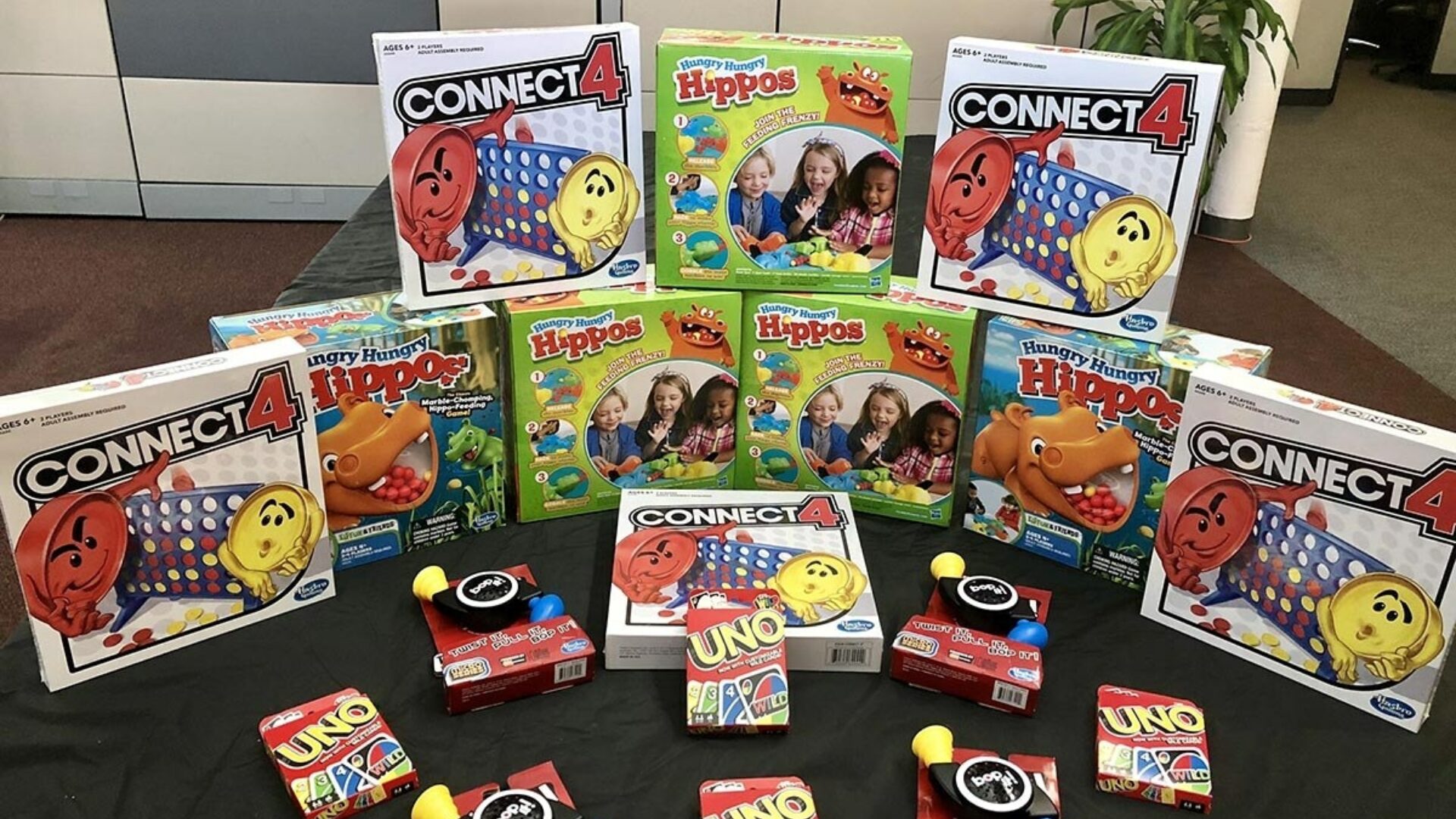 Today was a fun day at the Envision office. We celebrated "Ocho De Mayo" with some delicious tacos for lunch and some friendly competition. Broken into teams of 3, the competition started with a round of Bop It!, where each member of the team had to work collaboratively to try to achieve the highest score. Next, team members competed against others in a contest of Hungry, Hungry Hippos. Finally, teams faced off in a game of Connect 4, but with a twist since one team member from each side was also playing Uno with Wild cards being used to trigger extra moves in the Connect 4 game. In the end, it was a wonderful afternoon with great food, competition, and lots of laughs. Here's some pictures we took during the fun.